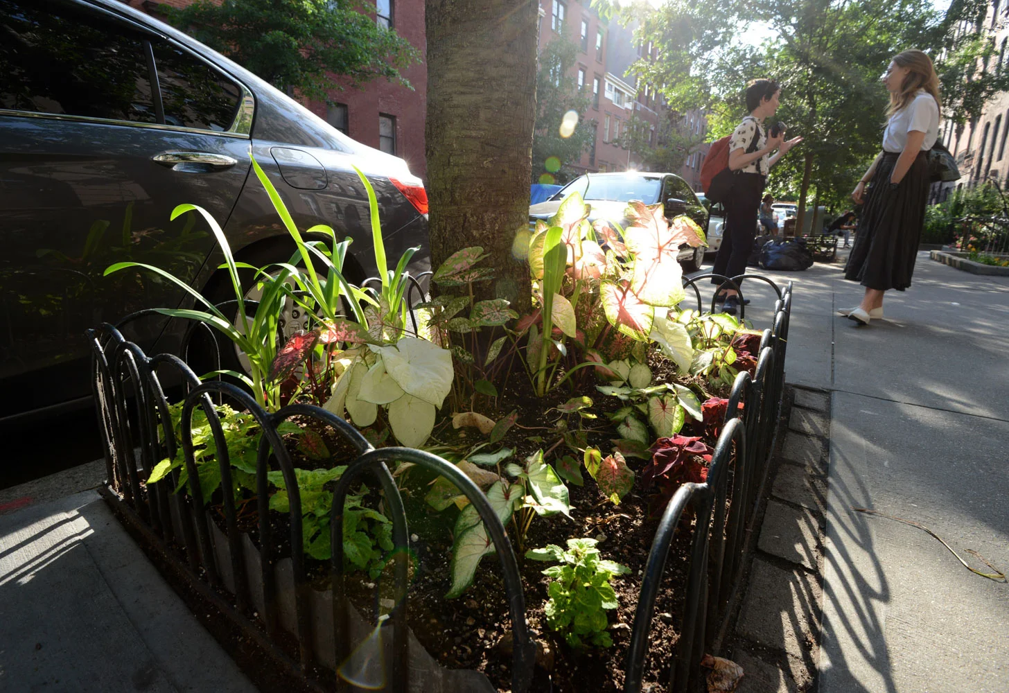 This is one of my favorite trees because it's literally in the middle of the sidewalk — that changes your experience. It reinstates its presence. What does it feel like walking past? Two people can't go through it together; you have to sashay to move through. You will never look at tree pits the same way again!